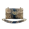 The Lady Severina python shoulder bag is part of our luxury collection. Handcrafted in hand-painted blue Camelot python leather, it is a dazzling and eye-catching accessory, perfect for any occasion day or night. The leather features a combination of gold, blue and cream colours, mixed with shades of brown, creating a glimmering effect.