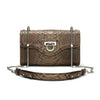 The beautiful gold chain bag strap can sit comfortably on the shoulder or across the body. The strap is adjustable, with the python leather pieces joined to the chain with gold-coloured D-rings. This snake skin hand bag will easily accommodate a small wallet, keys, mobile phone and cosmetics.
