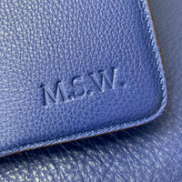 The leather cover is handmade-to-order in Kent, England, in the finest Italian cowhide leather. We love this leather, its beautiful texture and brilliant royal blue colour. It is durable and luxuriously soft to touch. The brand logo is embossed on the back. The leather covers are available in seventeen colours.