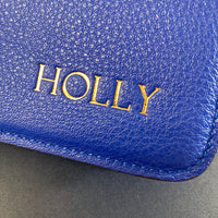 Letters are 8mm high (all capitals) and will be embossed in gold or blind (no colour) at the front right bottom corner. The maximum number of letters available, including spaces, numbers and special characters like dash, full stop and back slash, is eight.