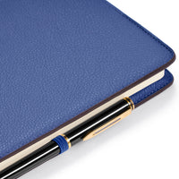 This refillable royal blue leather notepad comes in A5 size and is a great accessory for anyone who loves making notes in style. It is perfect for work or travelling and is an ideal gift for any occasion.