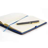 Each A5 hardback notebook/refill comes with matching elastic strip and pen holder (there is a slit for the pen holder on the leather cover), a ribbon bookmark and an additional pocket at the back with a brand logo embossed at the front in gold. Each has 80 sheets (160 sides) of lined paper. Refills are available to purchase separately in ten different colours to match the leather cover.