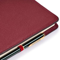 We love this leather, its beautiful texture and stylish burgundy colour. It is durable and luxuriously soft to touch. The brand logo is embossed on the back. The leather covers are available in seventeen colours.