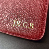 Letters are 8mm high (all capitals) and will be embossed in gold or blind (no colour) at the front right bottom corner. The maximum number of letters available, including spaces, numbers and special characters like dash, full stop and back slash, is eight.