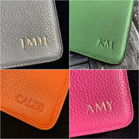Letters are 8mm high (all capitals) and will be embossed in gold or blind (no colour) at the front right bottom corner. The maximum number of letters available, including spaces, numbers and special characters like dash, full stop and back slash, is eight.