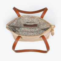 The bag is handcrafted in full grain cowhide leather with the brand logo discreetly embossed in the middle.   You are sure to be excited and surprised by the stunning colourful contrast Liberty lining on the inside, which will bring a sense of artful style to any occasion, whether you're popping out to run errands, meandering from boutique to boutique or commuting to the office.
