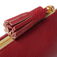 Chic and stylish personalised pencil case in textured burgundy leather with matching double-coloured tassel in burgundy and ivory, finished with a stitch.