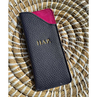 Fed up with bulky glasses cases which do not fit inside an evening bag or a jacket?  Look no further!  Keep your glasses safe and secure in this sleek and tactile unisex two-tone glasses case expertly handcrafted in England from the finest full grain Italian cowhide leather and lined with softest goat suede.
