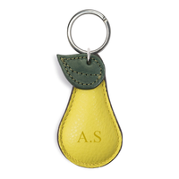 Letters are 8mm high (all capitals) and will be embossed in gold or blind (no colour) in the middle of the pear key ring. Max 3 characters including letters, numbers, spaces and special characters like: dash (-), full stop (.), back slash (\),
