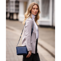 The interior of the bag features a bright floral Liberty lining, with large pocket and naturally tanned leather card holder.  Thanks to its boxy shape, you'll be surprised how much you can fit inside this small crossbody bag! The Irina Crossbody is the perfect bag for all occasions, from casual, jeans days to smart evenings out.