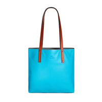 The Reversible Kent Leather Shopper Bag has quickly become our most popular product. This simple yet stylish and versatile bag is handmade using soft Italian cowhide leather in turquoise and grey for the main body and classic Northampton naturally tanned brown leather for the slim but sturdy and practical handles, which are long enough to comfortably fit over the shoulder on top of a coat.