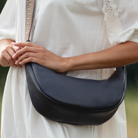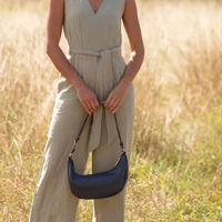 Timeless, elegant, and effortlessly versatile — the Luna Bag in our deep navy Italian leather is a refined staple that transitions seamlessly from day to night. With its beautifully curved silhouette, it’s designed to sit comfortably against the body, offering everyday practicality with a polished edge.