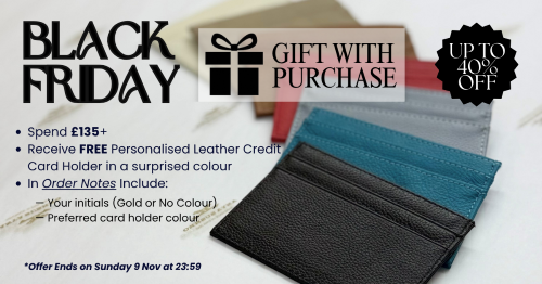 Letters are 8mm high (all capitals) and will be embossed in gold or blind (no colour) at the front right bottom corner. The maximum number of letters available, including spaces, numbers and special characters like dash, full stop and back slash, is seven.