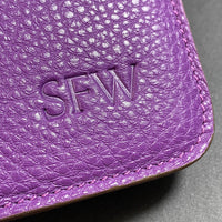 The leather cover is handmade-to-order in Kent, England, in the finest Italian cowhide leather. We love this leather, its beautiful texture and deep purple colour. It is durable and luxuriously soft to touch. The brand logo is embossed on the back. The leather covers are available in seventeen colours.